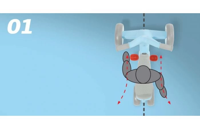 Je kind kan met uitgeklapte pedalen gaan oefenen met de voetjes op deze pedalen om zo te leren skelteren. Aan het begin zal dit even wennen zijn en kan je kind het steppen en trappen afwisselen. Doordat het stuur en de pedalen los van elkaar te bedienen zijn, blijft je kind altijd in controle over de BERG GO². Met het steppen en skelteren, zijn de eerste stappen in de ontwikkeling van je kind gezet!