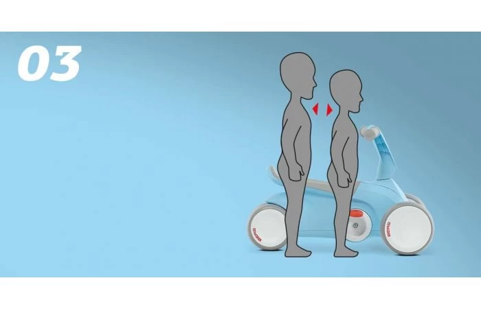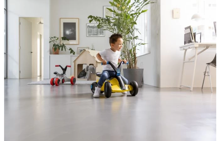 De ontwikkeling van je kind begint op een BERG GO². De BERG GO² is onze strakke en ergonomische skelter voor de jongste kinderen! Kinderen vanaf 10 maanden leren eerst steppen met de pedalen ingeklapt. Voor je het weet gaat je kind de hele kamer steppend door. Klap vervolgens heel gemakkelijk de pedalen uit, zodat je kind de eerste ervaring op kan doen met skelteren!