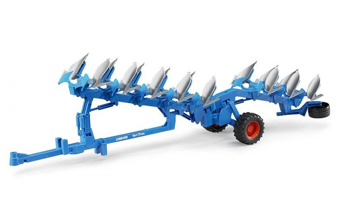 Zeer grote Bruder 2250 Lemken draaiploeg, die op alle mogelijk manieren te verstellen is. Steunwiel is om te klappen en de as kan omhoog. Deze ploeg is aan alle tractoren van Bruder te vestigen.