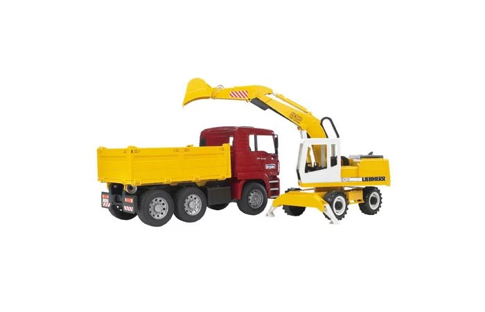 De zijkanten van de vrachtwagen zijn klapbaar en de cabine is draaibaar waardoor een kijkje in de motorkap mogelijk is, de graafmachine graaft echt en de cabine kan men 360 graden draaien.