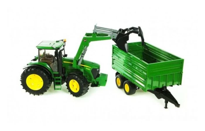 John Deere tractor met aanhanger. Van hoogwaardige kunststof in origineel design. Met rubberen banden en talrijke realistische speelfuncties.