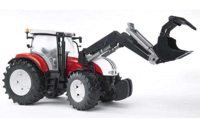 Deze kleurrijke Steyr CVT 6230 tractor met voorlader van Bruder is realistisch op schaal nagemaakt, Met het bijgeleverde stuurtje is deze tractor eenvoudig te besturen!