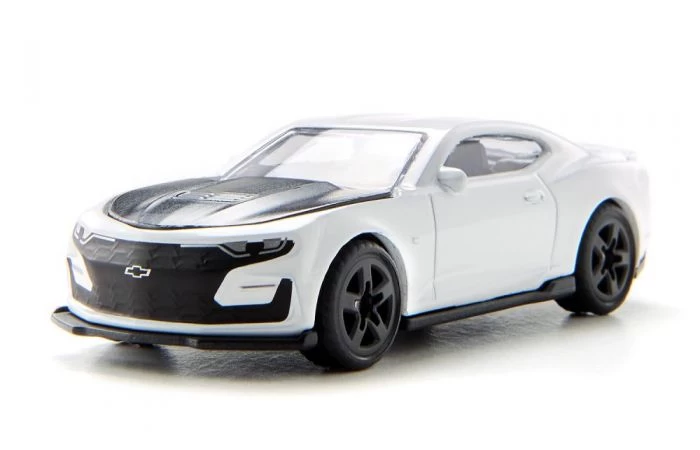 Muscle-Car met V8-Power – Ook de zesde generatie van de Chevrolet Camaro draagt het imago van een typische Muscle-Car. Vooral wanneer de chauffeur de spierballen van de V8-motor laat horen. Dat kan natuurlijk ook wanneer de wagen stilstaat: kap open en de blik valt meteen op de gedetailleerd uitgevoerde motor. Daarmee krijgt de Camaro een plek tussen de andere siku Muscle-Cars: Dodge Challenger, Chevrolet Corvette, Ford Mustang. Vanzelfsprekend is de nieuwste generatie nog sneller en wendbaarder dan de voorgangers en zorgen de rubberen banden voor een nog betere grip. De Chevrolet Camaro kan echter ook anders: door de trekhaak wordt hij een coole trekker voor een boottrailer of een aanhanger voor de motor.