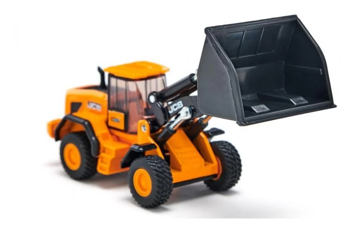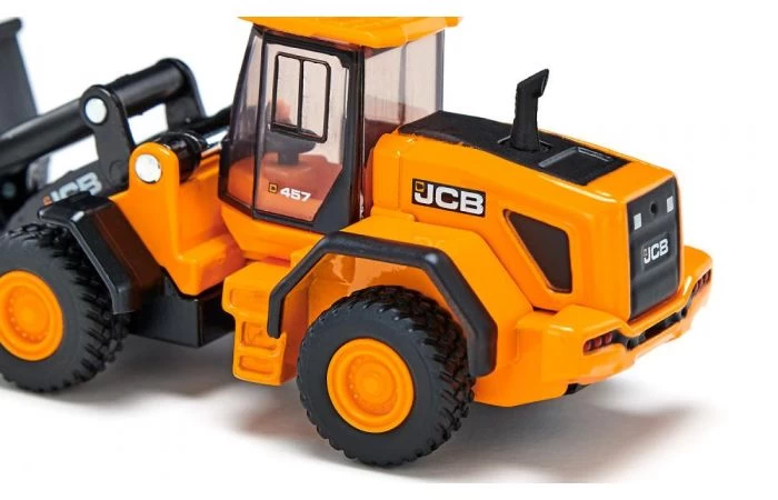 Grote schop en veel kracht – De JCB 457 WLS wiellader werkt met de grote schop flink wat weg: afval, tuinafval of houtspaanders. De allrounder wordt ingezet op bouwplaatsen, op de vuilstort, in de zagerij of op grote agrarische bedrijven. Het model op schaal 1:87 is net als het origineel uitgerust met een knikarm en een beweegbare schop. De wiellader is door de rubberen banden op elk terrein goed inzetbaar.