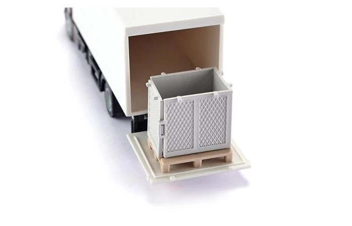 Door de ruime gesloten opbouw en de laadklep wordt het uitladen eenvoudig. Bij het siku voertuig op schaal 1:50 kan de laadklep net als bij het origineel verticaal omlaag worden gebracht. Met de pallet en de gaascontainer wordt de kinderkamer een logistiek centrum.