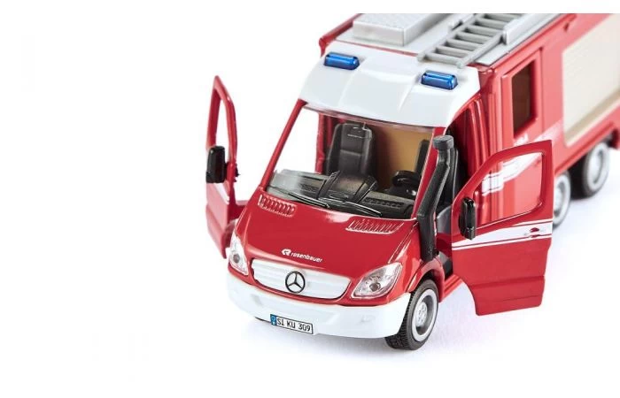 Mercedes Benz sprinter 6 x 6 Brandweer 1:50 Dé brandweer-Sprinter voor elke klus. Met 3 assen en aandrijving op alle wielen zijn ook plaatsen in onherbergzaam terrein voor dit model geen probleem. Door de deuren van de bestuurders- en manschappencabine, die wijd open kunnen, kan men snel uitstappen.