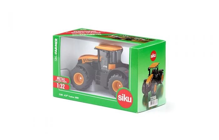 Met de JCB Fastrac 4000 zet SIKU het segment krachtige en robuuste middenklassetractoren op indrukwekkende wijze voort. SIKU brengt dit optisch zeer fraaie origineel nu als detailgetrouw model uit op de schaal 1:32. Behalve de beproefde kenmerken als fuseebesturing, een motorkap die open kan en SIKU-koppelingen, is dit model uitgerust met inklapbare spiegels. De cabine is rondom voorzien van glas en kan worden verwijderd. Origineelgetrouwe velgen en luchtbanden met landbouwprofiel maken het beeld van dit hoogwaardige model compleet.