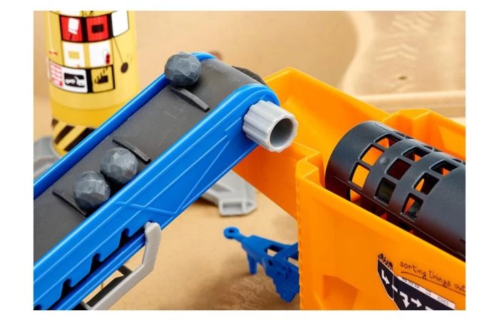 Bouwputten hebben een bijzondere aantrekkingskracht op kinderen. Aarde, kiezels, zand en modder, grote machines en vrachtwagens. Met de nieuwe SIKUWORLD set wordt de kinderkamer een enorme bouwplaats. De set bestaat uit vier grondplaten die door de vorm en de kleur een driedimensionale bouwput laten ontstaan en bovendien compatibel zijn met de andere SIKUWORLD producten. De bouwkeet is opgebouwd, de afrastering is opgesteld en de grote bouwkraan staat. De bouwwerkzaamheden kunnen beginnen: de arm is zwenkbaar en de beweegbare loopkat kan bouwmateriaal aan de haak opnemen en bij de transportband en de sorteereenheid neerzetten. De transportband kan met een draaiknop worden bewogen. Daarmee wordt het af te voeren materiaal naar de sorteereenheid gevoerd. Hier wordt het materiaal gesorteerd voor afvoer of hergebruik op de locatie. Met de in de set meegeleverde wendbare tractor met aanhangerkoppeling worden de machines op de bouwplaats gerangeerd.
