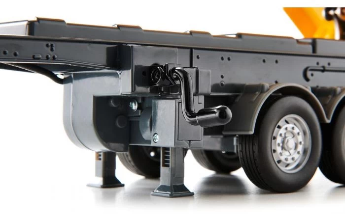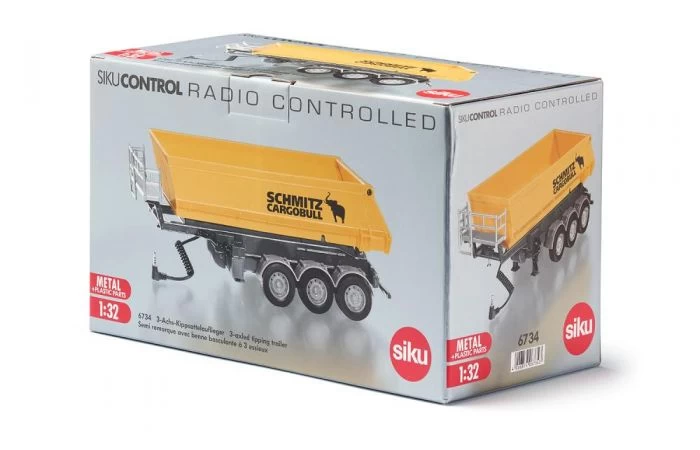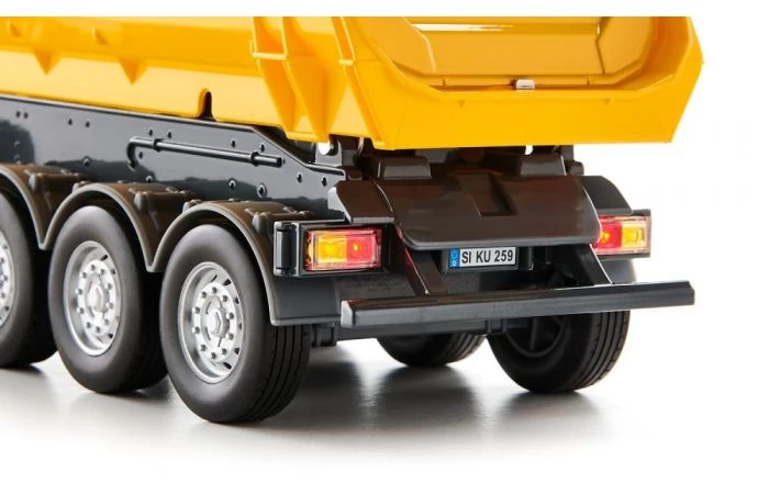 Professional op de bouwplaats met een groot laadvolumeDe nieuwe SIKUCONTROL 3-assige kipper-oplegger is de perfecte aanvulling op de SIKUCONTROL Volvo FH16 4×2 met Bluetooth besturing. Samen zijn ze de bouwprofessionals met een groot laadvolume. Met het origineel worden tot 30 ton asfalt, betonpuin, grind of zand vervoerd. Op schaal 1:32 kan de laadbak worden gekanteld, hierbij wordt automatisch de achterklep geopend. Wanneer de oplegger wordt afgekoppeld, kunnen de steunen mechanisch omlaag worden gedraaid.